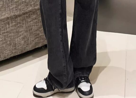 シックなカラーとシンプルでスタイリッシュなデザインが魅力的なフルレングスのストレートジーンズ。