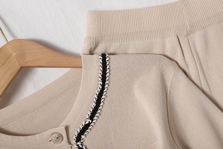 エレガントなデザインが大人可愛いニット素材のセットアップ。