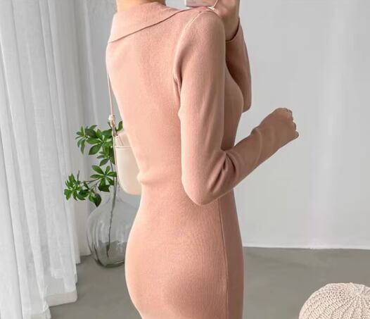 レディース ワンピース プルオーバー ニットワンピ ロング 長袖 Vネック タイト スリム 細身 ボタン 大人可愛い きれいめ シンプル カジュアル 上品 おしゃれ こなれ感 ラグジュアリー ナチュラル セクシー シック 高級感 優しい 穏やか 柔らかい 無地 秋 冬 デート お出かけ 韓国 普段使い フリーサイズ 小さめ フィット ブラック カーキ