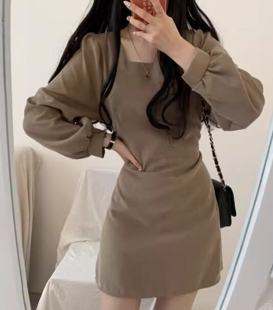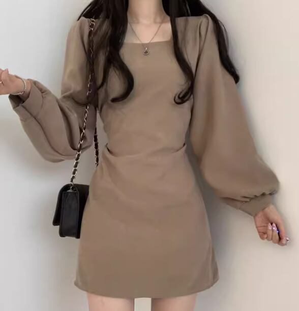 レディース ワンピース プルオーバー ミニ ショート 長袖 ボリューム袖 パフスリーブ スクエアネック Aライン ウエストマーク ウエストリボン ハイウエスト かわいい 大人可愛い きれいめ シンプル カジュアル 上品 おしゃれ ラフ ガーリー キュート ラグジュアリー ナチュラル セクシー シック 高級感 優しい 穏やか 無地 春 秋 冬 10代 20代 学生 デート お出かけ 普段使い モテ S M L XL ブラック カーキ
