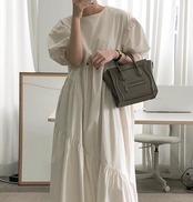 上品で落ち着いたカラーとシンプルで洗練されたデザインが大人可愛い半袖のロングワンピース。