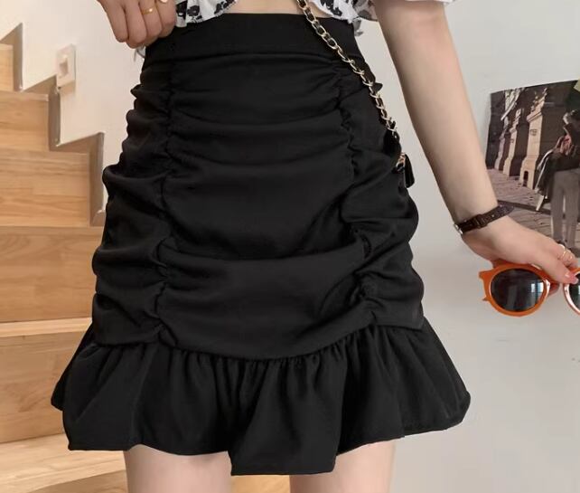 レディース スカート ミニ ショート Aライン フィッシュテール プリーツ フリル ファスナー ハイウエスト しわ加工 かわいい 大人可愛い シンプル カジュアル おしゃれ ラフ ガーリー 個性的 存在感 キュート ラグジュアリー アクティブ セクシー シック 高級感 芸術的 アーティスティック 無地 夏 10代 20代 学生 デート お出かけ 脚長 普段使い 着回し トレンド 流行 S M L ホワイト ブラック