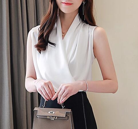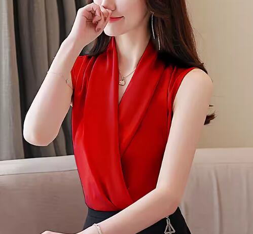 レディース トップス シャツ カットソー プルオーバー ミドル丈 袖なし ノースリーブ Vネック カシュクール シャーリング プリーツ サテン 大人可愛い きれいめ シンプル カジュアル 上品 おしゃれ こなれ感 ラフ エレガント ラグジュアリー ナチュラル 知的 清潔感 高級感 華やか スタイリッシュ 涼しげ 無地 夏 オフィス OL 通勤 デート お出かけ 普段使い 着回し モテ S M L XL ホワイト ピンク レッド グリーン パープル