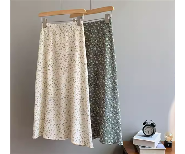 上品で可愛らしい小花柄が魅力的なミモレ丈のAラインスカート。