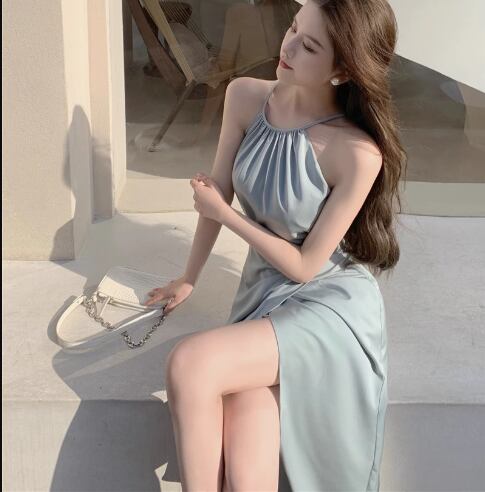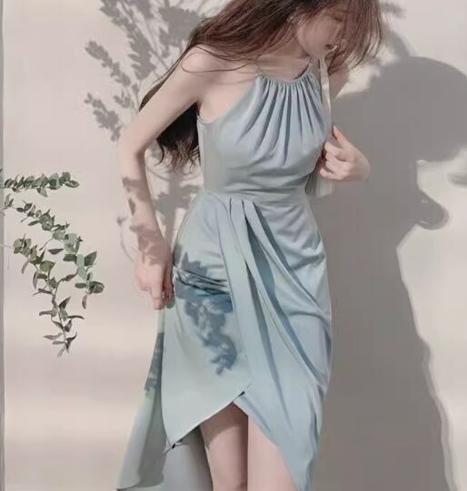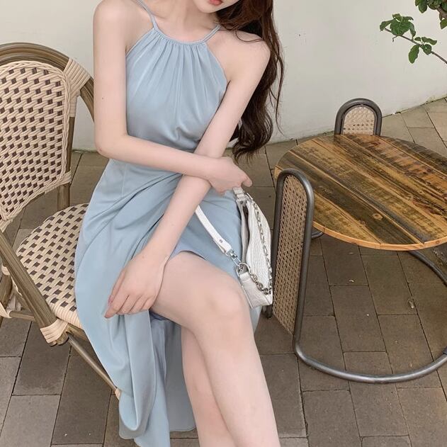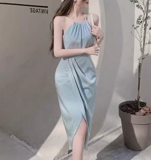 レディース ワンピース ドレス ミモレ ロング 左右非対称 イレギュラー 不規則 袖なし ノースリーブ ホルターネック タイト スリット ファスナー ハイウエスト ストレッチ 伸縮性 大人可愛い きれいめ シンプル カジュアル 上品 おしゃれ かっこいい こなれ感 ラフ 個性的 エレガント ラグジュアリー 爽やか セクシー シック 高級感 芸術的 アーティスティック スタイリッシュ 優しい 穏やか 無地 夏 デート お出かけ パーティー イベント 普段使い モテ S M L ブルー
