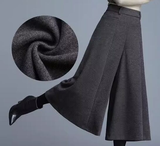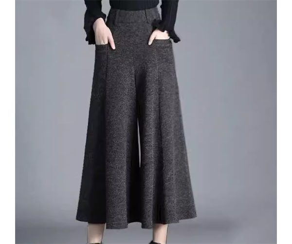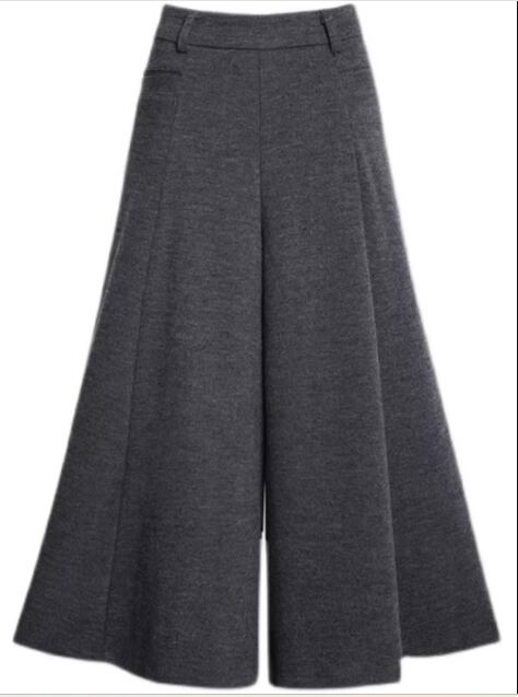 一見スカートに見えるほどに広い裾幅が印象的なクロップド丈のワイドパンツ。
