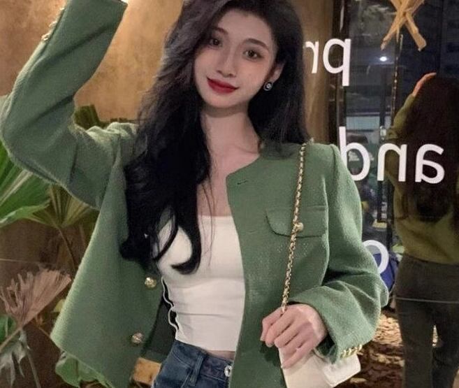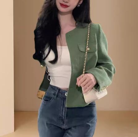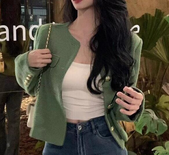 レディース ジャケット ノーカラージャケット ショート 長袖 ラウンドネック 襟なし ノーカラー 前開き ボタン 大人可愛い きれいめ シンプル カジュアル 上品 おしゃれ かっこいい こなれ感 エレガント ラグジュアリー ハンサム シック 高級感 スタイリッシュ 優しい 穏やか 無地 春 秋 デート お出かけ 普段使い 着回し S M ゆったり グリーン 春カラー