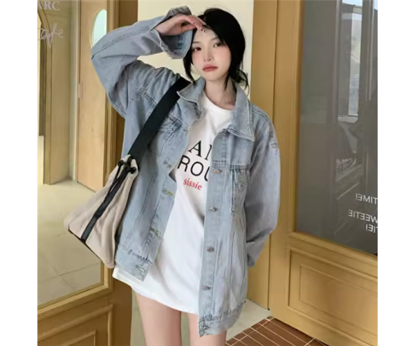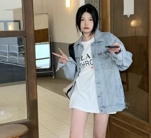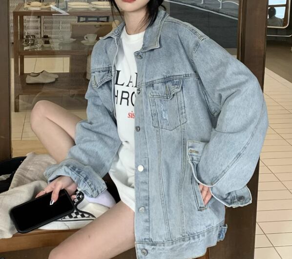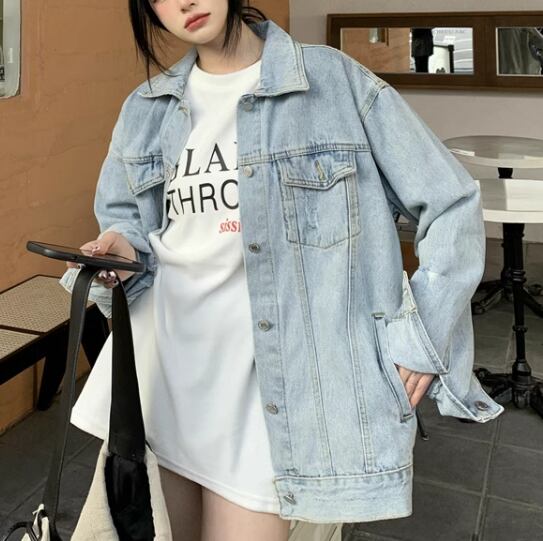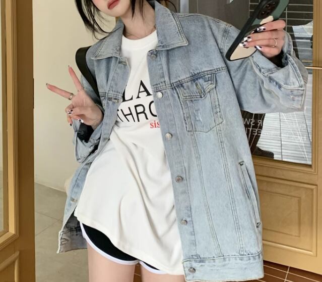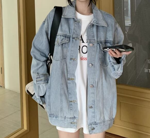 淡いライトブルーの色味がおしゃれなオーバーサイズのデニムジャケット。