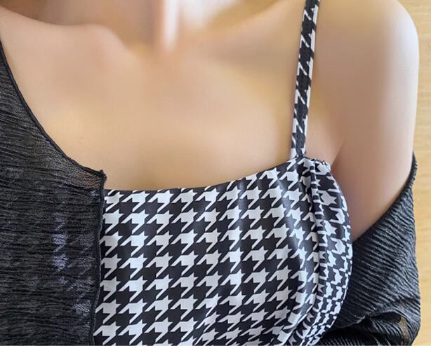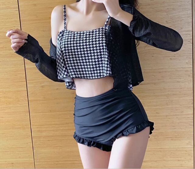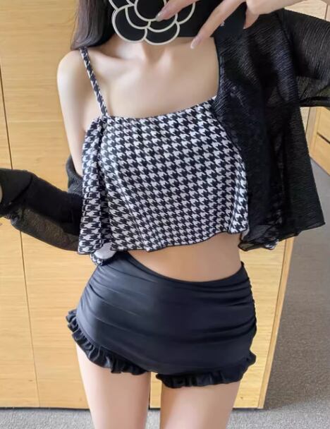 オフショル風のデザイン×千鳥格子柄が大人可愛いセパレート水着。
