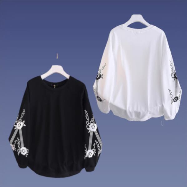 体型をカバーしながら、おしゃれな大人可愛いスタイルを演出するプラスサイズのルーズカジュアルスウェットシャツ。春から秋まで幅広く活躍し、オフィスからアウトドアまで幅広いシーンで活躍します。ホワイトとブラックのカラーバリエーションで、スタイルに合わせて選べます。大きいサイズまでご用意しています。誰もがゆったりとした着心地を楽しめます。