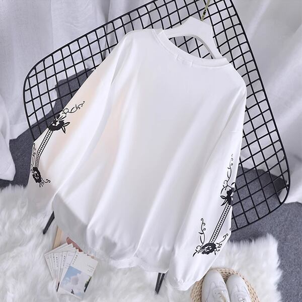 2色展開 プラスサイズ/ルーズカジュアルスウェットシャツ レディース トップス ロンT ニット スウェット 上着 長袖 ラグラン ラウンドネック 襟なし ノーカラー ワイド ふっくら かわいい 大人可愛い カジュアル おしゃれ ガーリー エレガント オフィスカジュアル プリント 春 夏 秋 10代 20代 30代 オフィス 通勤 アウトドア ガーデン ショッピング 韓国 体型カバー トレンド 2XL 3XL 4XL 5XL 6XL 大きいサイズ ゆったり オーバーサイズ ホワイト ブラック