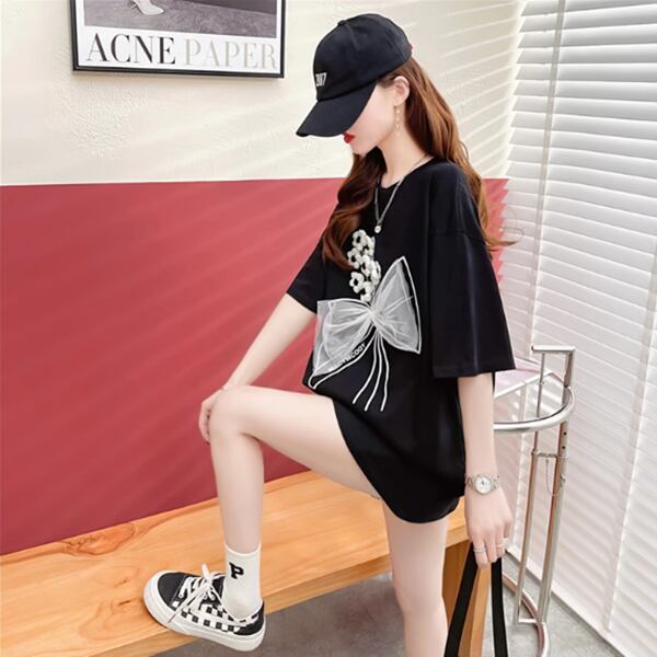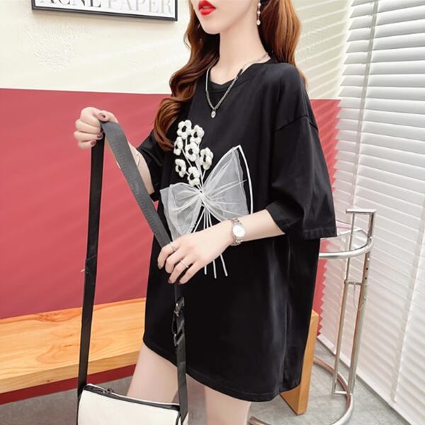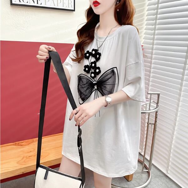 おしゃれでカジュアルなレディースTシャツです。立体的なかぎ針編みメッシュのリボンは新鮮です!生地は柔らかくて肌に優しく通気性があります。ゆったりとしたサイズ感で体形をカバーし、細見え効果も抜群です。