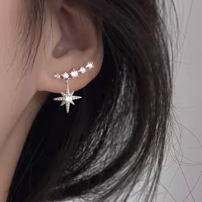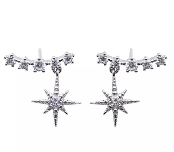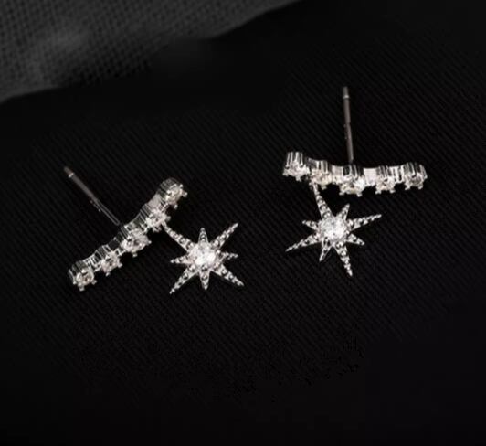 耳元をぱっと華やかにしてくれる、ダイヤモンド×六芒星のピアス。