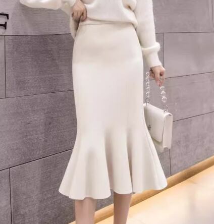 レディース スカート ニット ニットスカート マーメイドスカート ミモレ ミドル丈 タイト スリム 細身 マーメイド フィッシュテール フェミニン フリル ハイウエスト ウエストゴム かわいい 大人可愛い きれいめ シンプル カジュアル 上品 おしゃれ こなれ感 ガーリー エレガント キュート ラグジュアリー セクシー シック 高級感 優しい 穏やか 無地 秋 冬 デート お出かけ 脚長 普段使い 着回し モテ 清楚 トレンド 流行 フリーサイズ ブラック グレー アプリコット