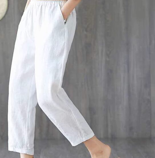 レディース パンツ ボトムス ハーレムパンツ クロップド丈 テーパード ポケット ウエストゴム 薄手 リネン 綿 コットン 大人可愛い きれいめ シンプル カジュアル 上品 おしゃれ かっこいい レトロ ラフ ボーイッシュ クール 存在感 ナチュラル 清潔感 爽やか リラックス ハンサム シック 無地 夏 デート お出かけ 楽ちん 普段使い 着回し M L XL ホワイト ブラック ブラウン イエロー オレンジ