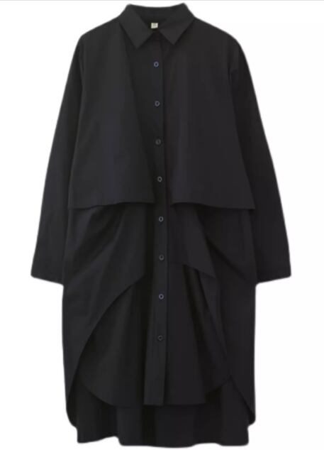 イレギュラーなスカートの裾がおしゃれなモード系のシャツワンピース。