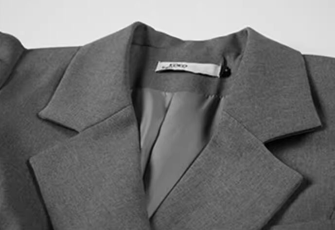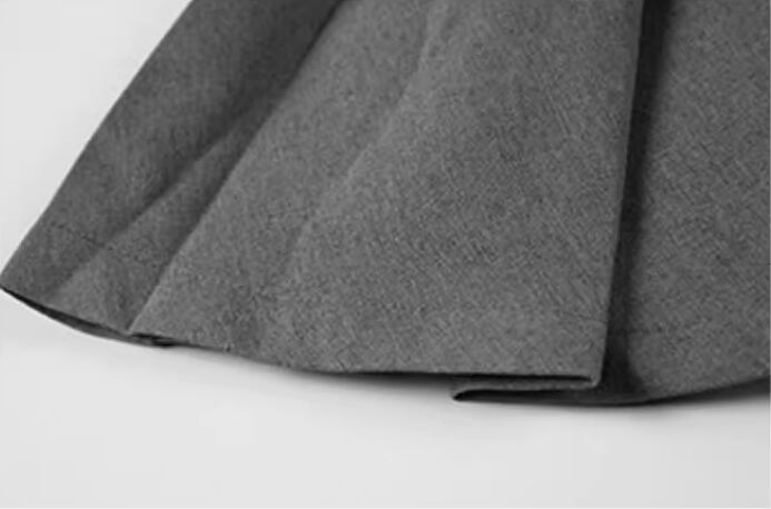落ち着いたグレーの色味とスーツ風のデザインが大人可愛い長袖のショート丈ワンピース。