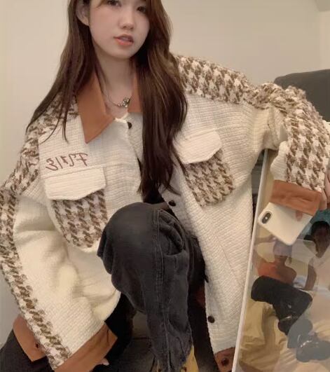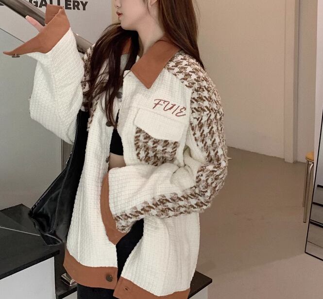レディース ジャケット ニット カーディガン アウター 上着 羽織 ニットカーディガン ミドル丈 長袖 襟付き ポロカラー ポケット 前開き ボタン 厚手 かわいい 大人可愛い シンプル カジュアル おしゃれ かっこいい レトロ ラフ メンズライク ボーイッシュ ルーズ 個性的 クール モダン ラグジュアリー アクティブ ワイルド ハンサム シック 千鳥格子 秋 冬 10代 20代 学生 デート お出かけ 普段使い 着回し トレンド 流行 M L XL ゆったり ゆる 大きめ オーバーサイズ オフホワイト