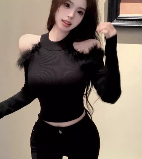 レディース トップス ニット セーター プルオーバー ショート 長袖 ハイネック オフショルダー 肌見せ 肩出し タイト スリム 細身 ファー 大人可愛い カジュアル おしゃれ こなれ感 ラフ 個性的 クール 存在感 抜け感 ラグジュアリー セクシー シック 高級感 芸術的 アーティスティック 華やか スタイリッシュ 無地 秋 10代 20代 学生 デート お出かけ 普段使い 着回し S M L 小さめ フィット ホワイト ブラック ワインレッド