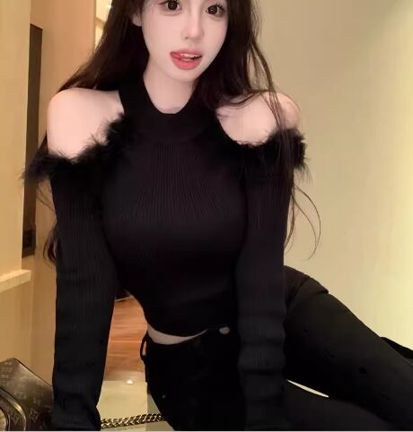 肩出しデザイン×タイトなシルエットがセクシーな大人可愛い長袖のニットセーター。