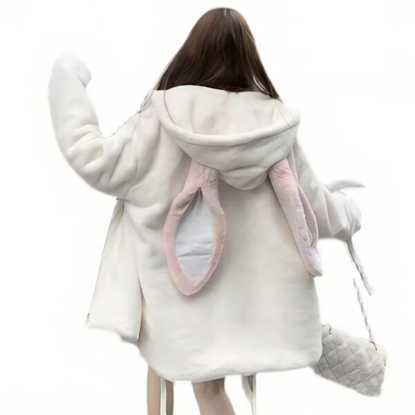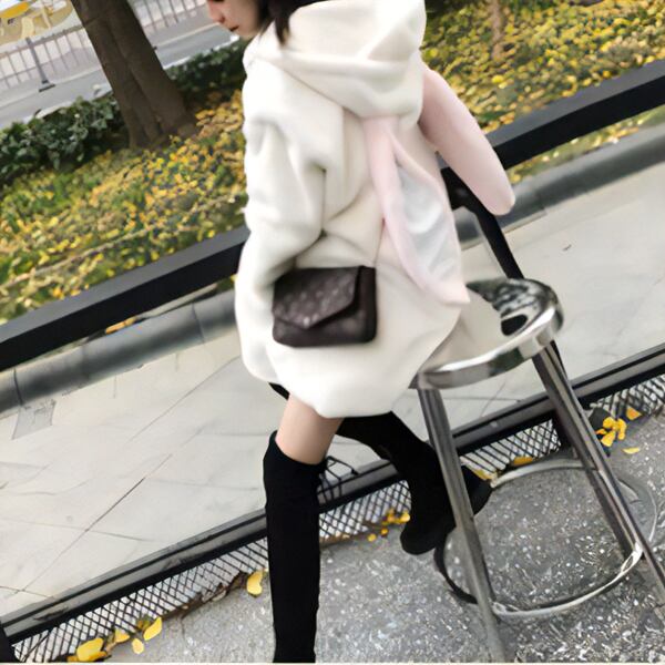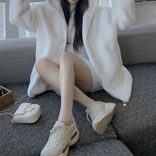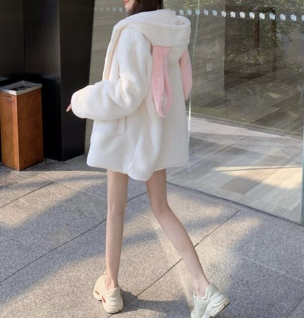 レックスウサギのぬいぐるみジャケット レディース トップス パーカー コート ブルゾン スウェット ジャージ アウター ミドル丈 長袖 フード ワイド フェミニン ふっくら ファスナー 前開き フード フェイクファー かわいい カジュアル 上品 おしゃれ ガーリー エレガント ラブリー キュート 華やか 柔らかい 春 秋 冬 10代 20代 OL 学生 お出かけ ホテル ショッピング ライブ コスプレ 普段使い インスタ映え ゆったり