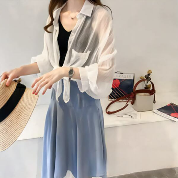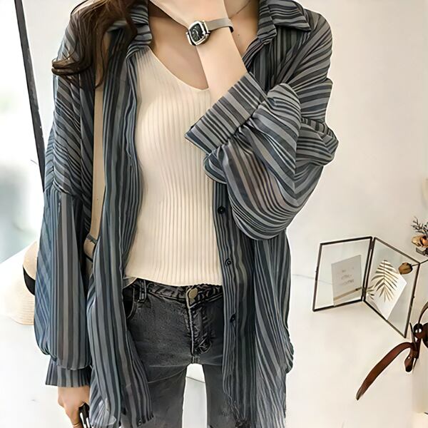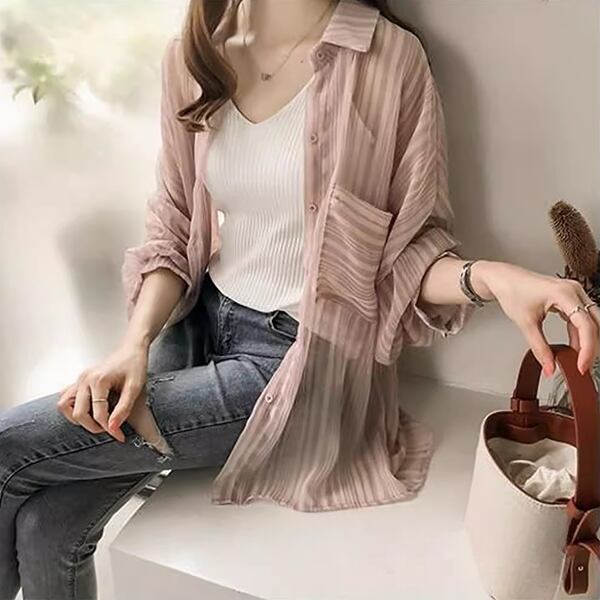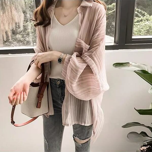 夏の陽差しを楽しむなら、韓国スタイルの妖精的な日焼け止めがおすすめです。アイスシルク素材で涼しく、UVカット効果もバツグン。長袖で紫外線から肌を守りつつ、ストライプ柄でトレンディさも演出。この夏、おしゃれに日焼け対策を楽しんでください!