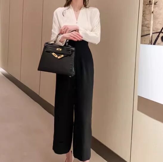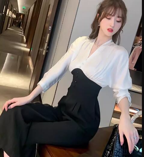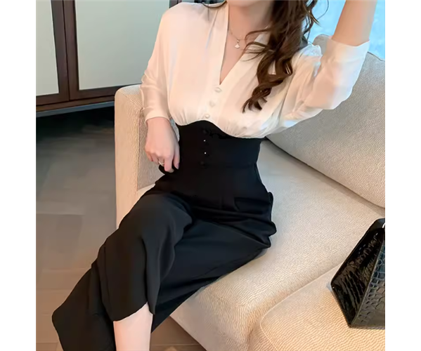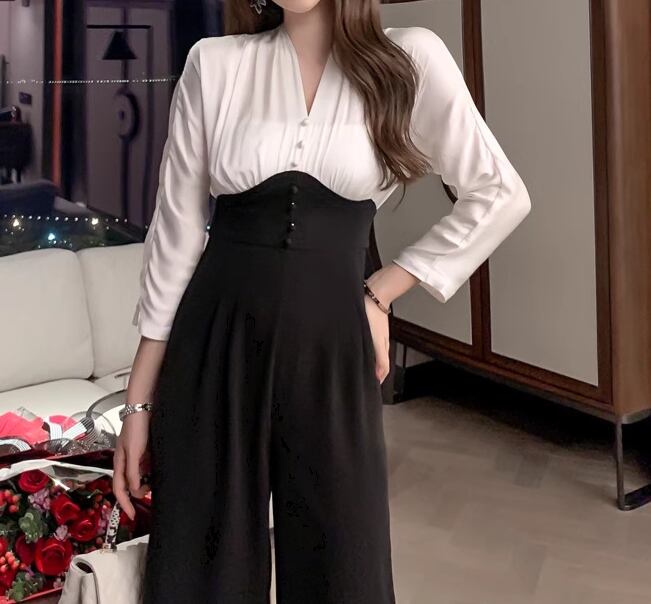 レディース スーツ オールインワン ジャンプスーツ クロップド丈 長袖 Vネック ワイド ポケット ハイウエスト 切り替えデザイン 大人可愛い きれいめ シンプル カジュアル 上品 おしゃれ かっこいい こなれ感 ボーイッシュ ルーズ 個性的 クール モード系 エレガント ラグジュアリー 知的 清潔感 爽やか ハンサム シック 高級感 オフィスカジュアル スタイリッシュ 無地 秋 オフィス ビジネス OL 通勤 美脚 脚長 普段使い S M L XL ホワイト ブラック