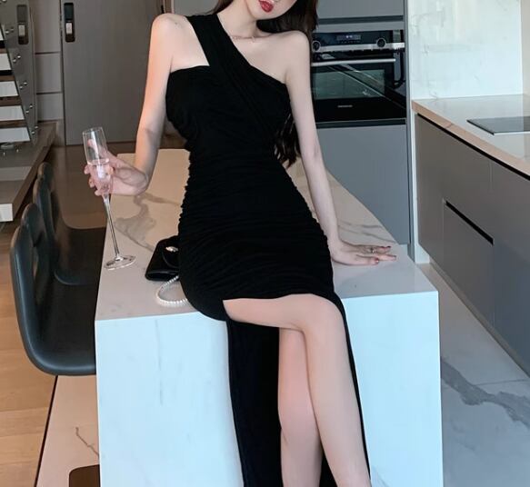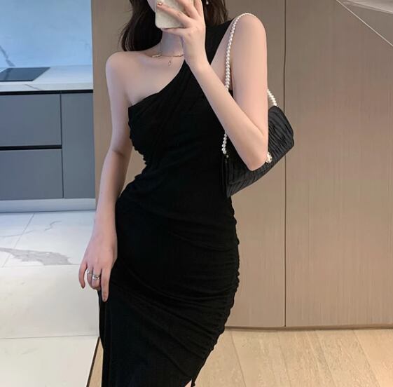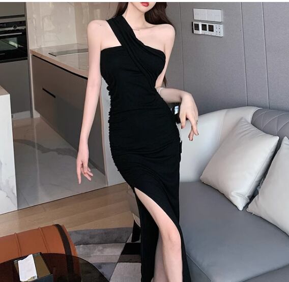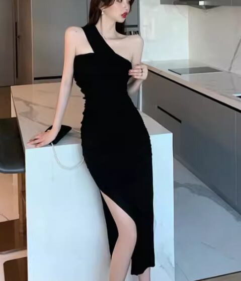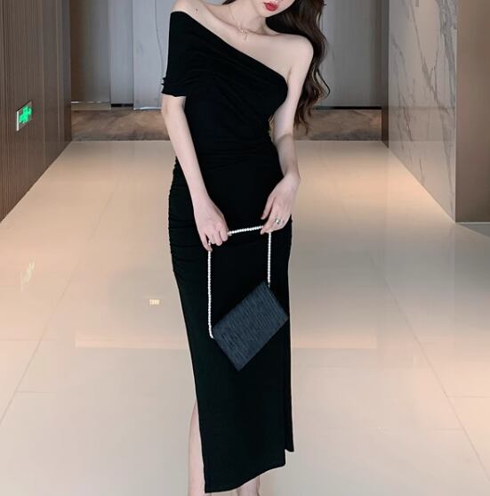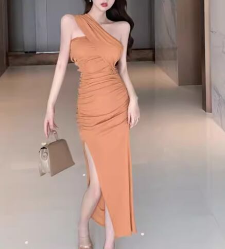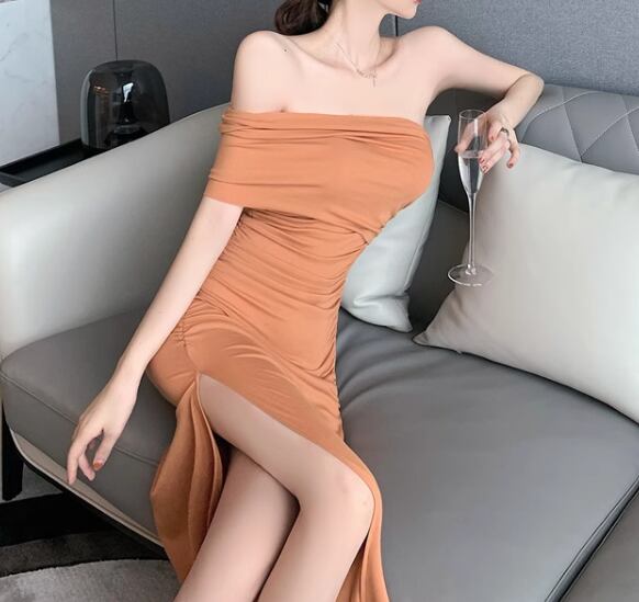 レディース ドレス パーティードレス ナイトドレス パーティー ラウンジ ホステス ロング 袖なし ノースリーブ ワンショル タイト スリム 細身 スリット ニット きれいめ シンプル 大人可愛い 上品 おしゃれ かっこいい クール エレガント 存在感 セクシー シック ラグジュアリー 高級感 セレブリティ 女性らしい こなれ感 無地 イベント ホテル レストラン デート 食事会 会食 夏 S M L 小さめ オレンジ ブラック