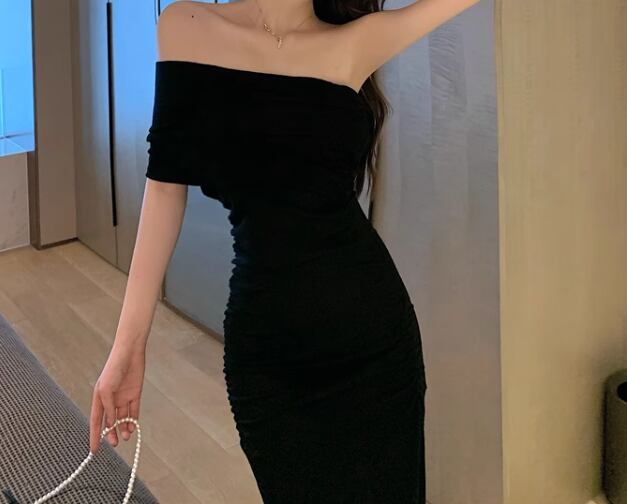肩出し×背中見せデザインが大人っぽくてセクシーなロングドレス。