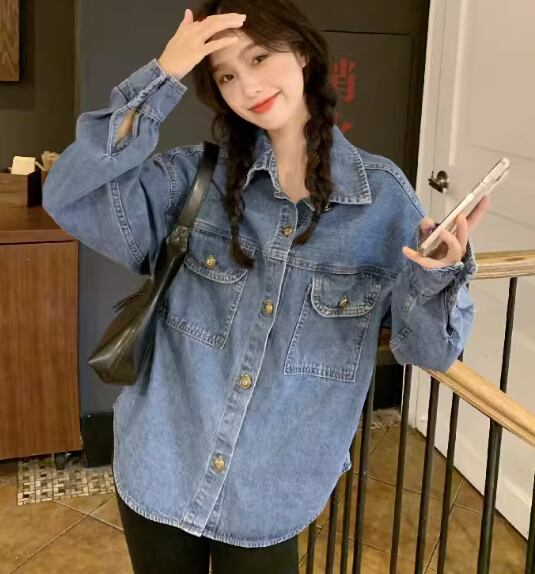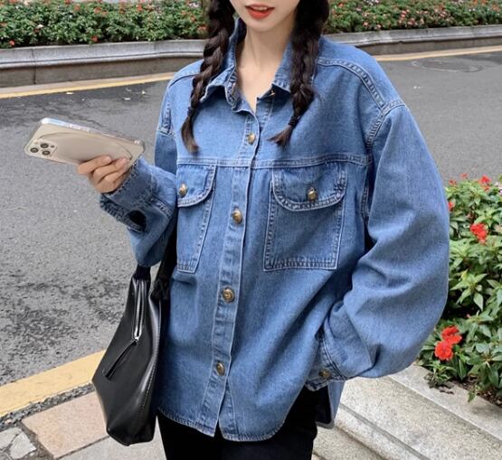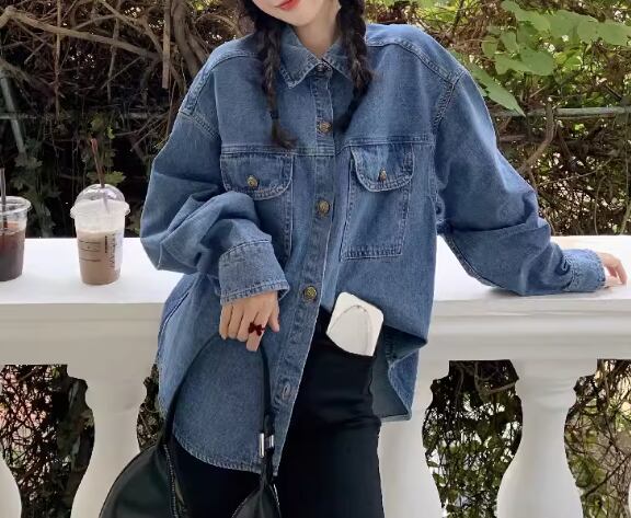 レディース トップス シャツ デニム 羽織 ミドル丈 長袖 襟付き ポロカラー 前開き ボタン ダメージ かわいい 大人可愛い シンプル カジュアル おしゃれ かっこいい レトロ メンズライク ボーイッシュ ルーズ クール ナチュラル 知的 ハンサム シック 高級感 スタイリッシュ 無地 秋 デート お出かけ 普段使い 着回し トレンド 流行 S M L XL ゆったり ゆる 大きめ オーバーサイズ ブルー