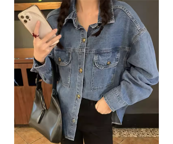 ゆったりとしたシルエットとメンズライクなデザインが魅力的な長袖のデニムシャツ。