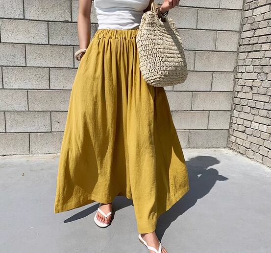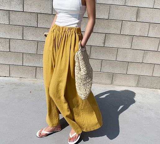 レディース パンツ ボトムス バギーパンツ ガウチョパンツ ワイドパンツ フルレングス ポケット ハイウエスト ウエストゴム リネン コットン 大人可愛い シンプル カジュアル 上品 おしゃれ レトロ ラフ ボーイッシュ ルーズ クール ナチュラル リラックス ハンサム シック 優しい 穏やか 無地 春 デート お出かけ 楽ちん 体型カバー 普段使い 着回し ゆったり ゆる フリーサイズ 大きめ オーバーサイズ ビッグシルエット ブラック イエロー オフホワイト グリーン