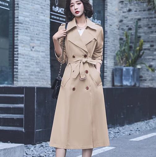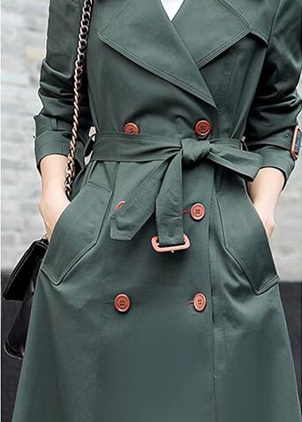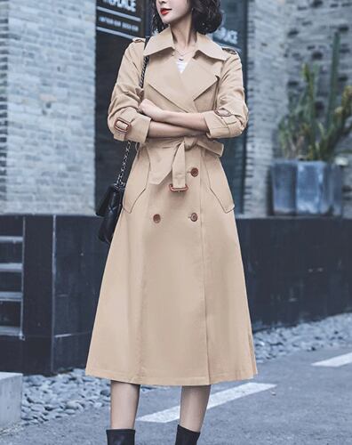 英国風のデザインがスタイリッシュでおしゃれなロング丈のトレンチコート。