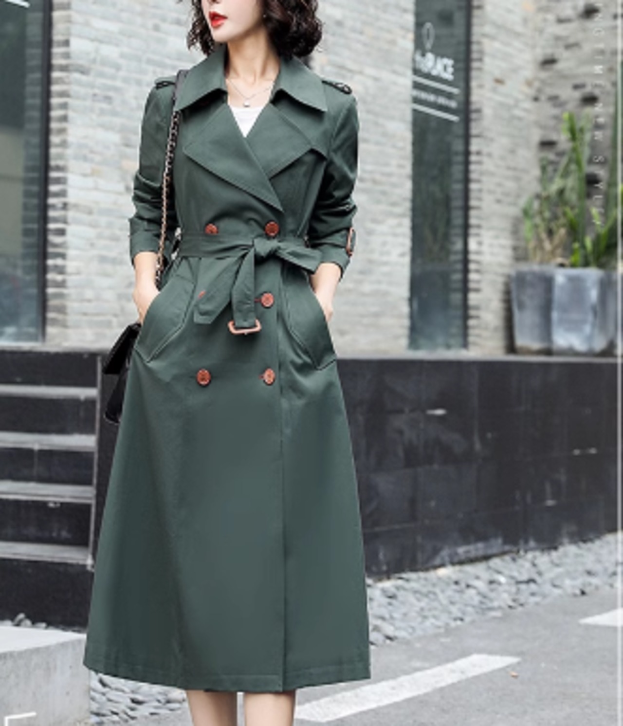 レディース コート アウター 上着 トレンチ ロング ミドル丈 長袖 襟付き スーツカラー スリム 細身 スマート ベルト ウエストマーク ポケット 異国風 ボタン 大人可愛い きれいめ シンプル カジュアル 上品 おしゃれ かっこいい レトロ こなれ感 ボーイッシュ クール エレガント クラシカル ナチュラル ハンサム シック 高級感 スタイリッシュ 無地 春 デート お出かけ 韓国 普段使い 着回し 定番 S M L XL カーキ グリーン