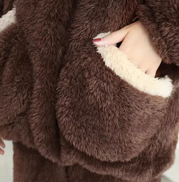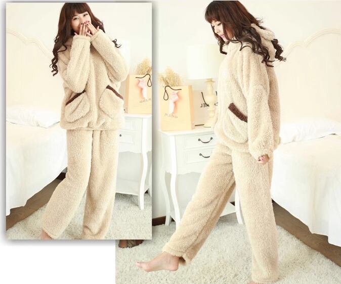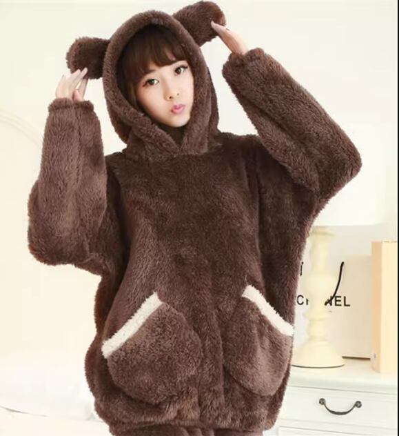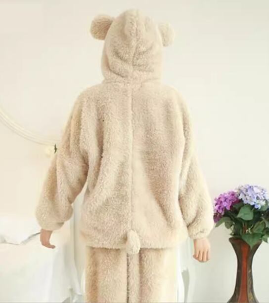 クマの着ぐるみ風のデザインがとってもキュートな冬用パジャマの上下セット。