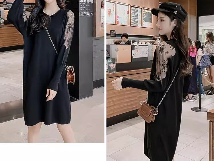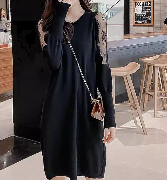 レディース ワンピース プルオーバー 膝丈 膝下 ミモレ ミドル丈 長袖 ラウンドネック Aライン フェミニン レース 透け感 かわいい 大人可愛い きれいめ カジュアル 上品 おしゃれ ガーリー 個性的 クール エレガント 抜け感 キュート ラグジュアリー セクシー シック 高級感 芸術的 アーティスティック 秋 冬 体型カバー 普段使い モテ ゆったり フリーサイズ ブラック