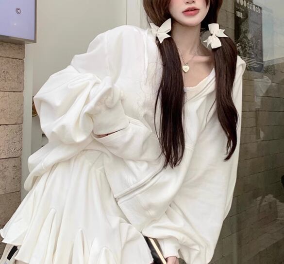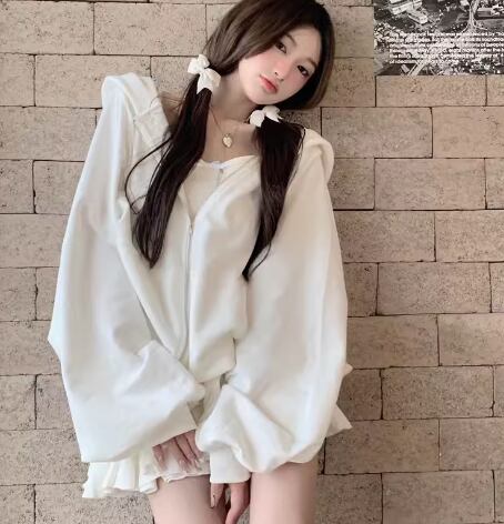 レディース トップス パーカー 羽織 前開き ショート 長袖 ボリューム袖 バルーン袖 ランタンスリーブ ファスナー ポケット フード スウェット かわいい 大人可愛い シンプル カジュアル おしゃれ レトロ ラフ メンズライク ボーイッシュ スポーティー ルーズ クール キュート アクティブ ナチュラル シック 高級感 スタイリッシュ 無地 春 秋 デート お出かけ 体型カバー 普段使い 着回し トレンド 流行 ゆったり フリーサイズ ホワイト ブラック カーキ
