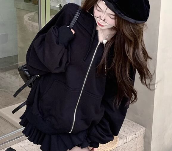 ボリュームのあるバルーン袖がおしゃれなジップアップパーカー。