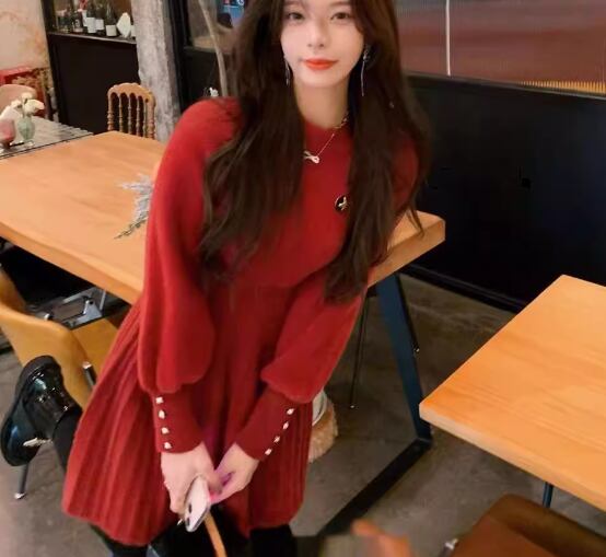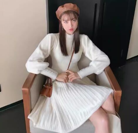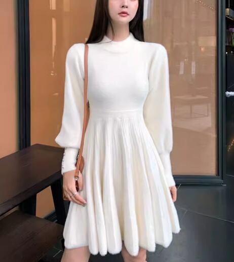 レディース ワンピース プルオーバー ニットワンピ ミニ ショート 長袖 パフスリーブ ラウンドネック スリム 細身 Aライン プリーツ ハイウエスト ボタン ベルベット かわいい 大人可愛い きれいめ シンプル カジュアル 上品 おしゃれ ガーリー エレガント ラブリー キュート ラグジュアリー セクシー シック 高級感 華やか 無地 秋 冬 10代 20代 学生 デート お出かけ 普段使い モテ M L ホワイト ブラック ピンク レッド グリーン
