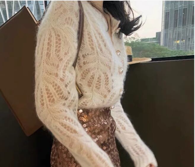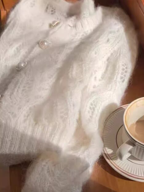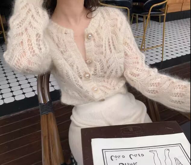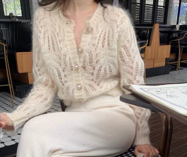 レディース トップス ニット セーター カーディガン ショート 長袖 ラウンドネック フェミニン 前開き ボタン 薄手 モヘア かわいい 大人可愛い きれいめ シンプル カジュアル 上品 おしゃれ ガーリー エレガント ラブリー キュート ラグジュアリー シック 高級感 優しい 穏やか フェアリー 春 デート お出かけ 重ね着 普段使い 着回し レイヤード モテ 清楚 S M L オフホワイト