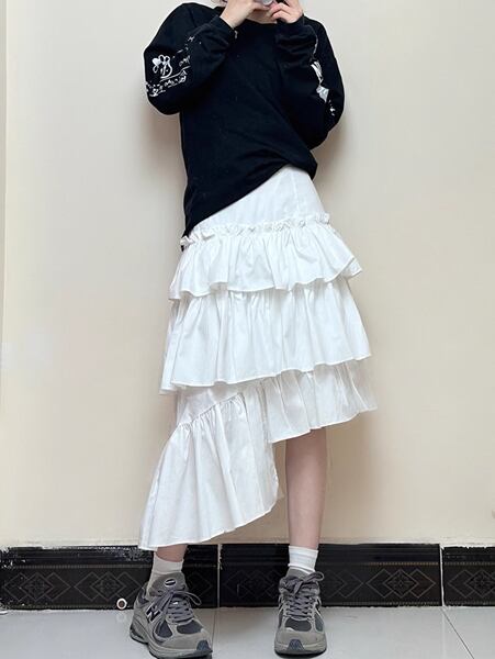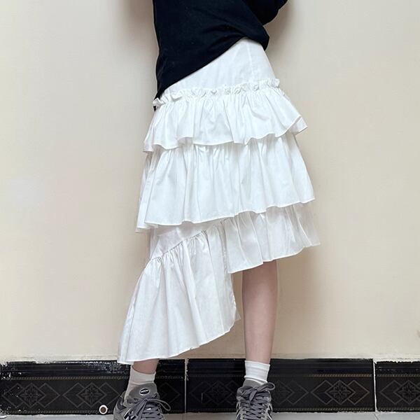 レトロイレギュラースカート/ティーアードスカート レディースケーキスカート スカート ボトムス ギャザースカート フレアスカート ロングスカート ミモレ フレア 細身 Aライン アシンメトリー 裾ワイド フェミニン ハイウエスト かわいい 大人可愛い カジュアル 上品 おしゃれ エレガント ラブリー キュート 無地 春 秋 10代 20代 通勤 パーティー イベント レストラン ホテル ショッピング コーデ トレンド インスタ映え
