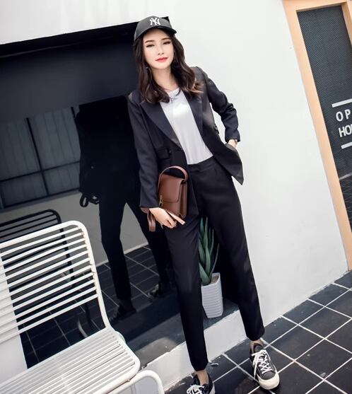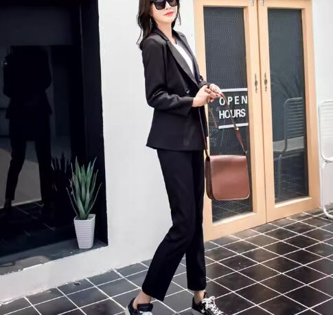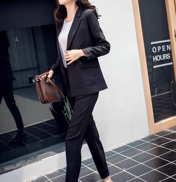 二点セット 上下セット ツーピース レディース ジャケット パンツ スーツ セットアップ アンクル丈 フルレングス 長袖 襟付き スーツカラー スリム 細身 ストレート スマート ポケット ボタン きれいめ シンプル カジュアル 上品 おしゃれ かっこいい レトロ こなれ感 クール エレガント フォーマル クラシカル 知的 清潔感 ハンサム シック 高級感 スタイリッシュ 無地 春 秋 オフィス ビジネス OL 通勤 普段使い 着回し 定番 XS S M L XL 小さいサイズ ブラック グレー