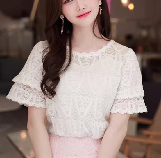 繊細で上品なレースが美しい、半袖Tシャツ。