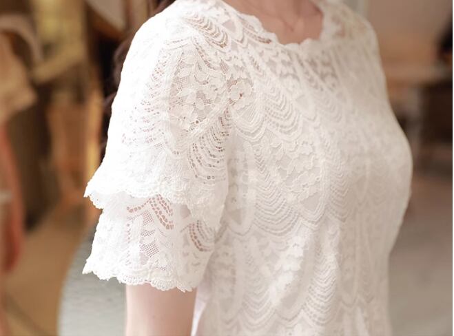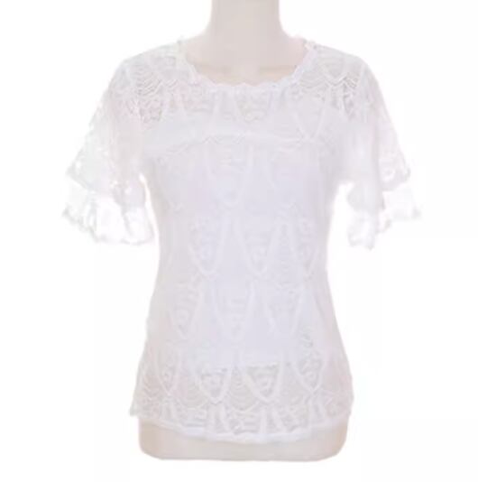 レディース トップス シャツ カットソー プルオーバー Tシャツ ミドル丈 半袖 ラウンドネック フェミニン レース 刺繍 シフォン 透け感 かわいい 大人可愛い きれいめ シンプル カジュアル 上品 おしゃれ ガーリー エレガント キュート ラグジュアリー シック 高級感 芸術的 アーティスティック 華やか 優しい 穏やか フェアリー 夏 デート お出かけ 普段使い 着回し モテ M L XL ホワイト ブラック