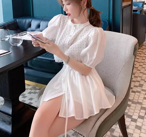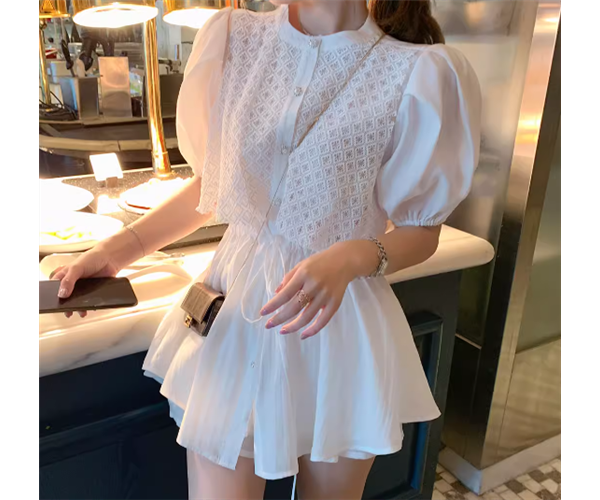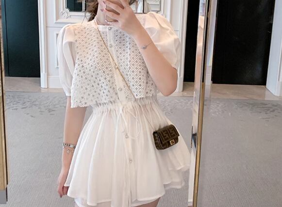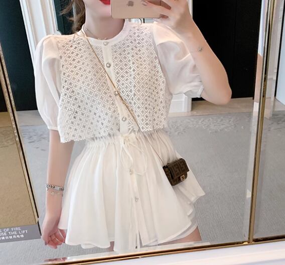二点セット 上下セット ツーピース レディース トップス パンツ セットアップ ショートパンツ 半袖 パフスリーブ ラウンドネック フェミニン レース リボン ハイウエスト ウエストゴム ボタン かわいい 大人可愛い きれいめ シンプル カジュアル 上品 おしゃれ レトロ ラフ ガーリー エレガント ラブリー キュート ラグジュアリー 知的 清潔感 セクシー シック 高級感 華やか 優しい フェアリー 夏 10代 20代 学生 デート お出かけ 普段使い 着回し 清楚 S M L ホワイト