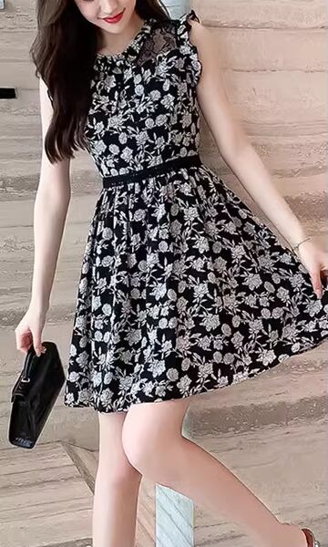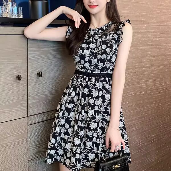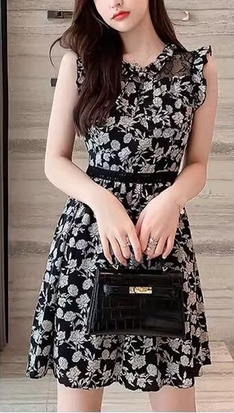 新しいス Aラインドレスは、ノースリーブで洗練された西洋スタイル。膝上のミニスカートは着る人を若くスリムに見せる効果的なデザイン。自信を与えます。繊細なレースと花柄が女性らしさを引き立て、華やかさを演出します。ちょっとした外出にはもちろん、特別な日やパーティーでもお使いいただけます。