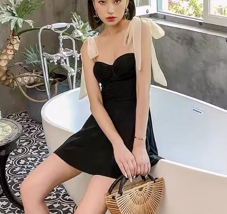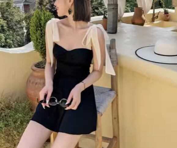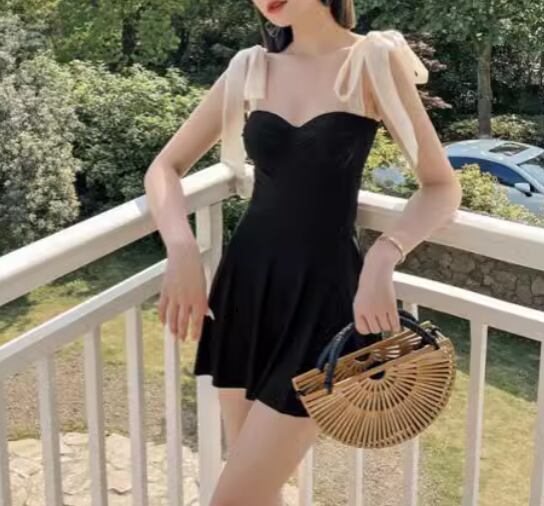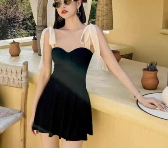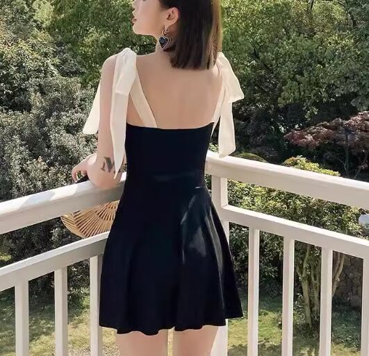 レディース ワンピース 体型カバー スカートスタイル ノンワイヤー パッド付き ノースリーブ リボン 背中開き バックレス かわいい 大人可愛い きれいめ シンプル カジュアル 大人っぽい おしゃれ お洒落 キュート ガーリー セクシー ヘルシー シック 無地 リゾート 旅行 温泉 プール 夏 海 着痩せ 背中見せ 日除け お腹カバー M L XL Aカップ Bカップ Cカップ ブラック