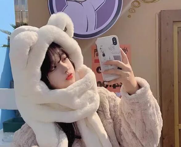 ファッション小物 帽子 くま マフラー 手袋 スノーハット レディース もこもこ ふわふわ 毛皮 かわいい カジュアル おしゃれ ガーリー 個性的 存在感 ラブリー キュート ラグジュアリー アクティブ ポップ ファンシー メルヘン 高級感 優しい 穏やか フェアリー 無地 冬 10代 20代 学生 デート お出かけ 暖かい 防寒 普段使い モテ インスタ映え フリーサイズ ホワイト ブラウン