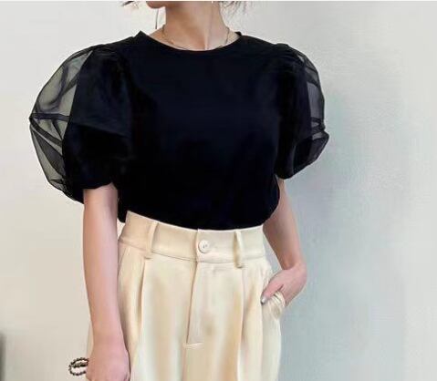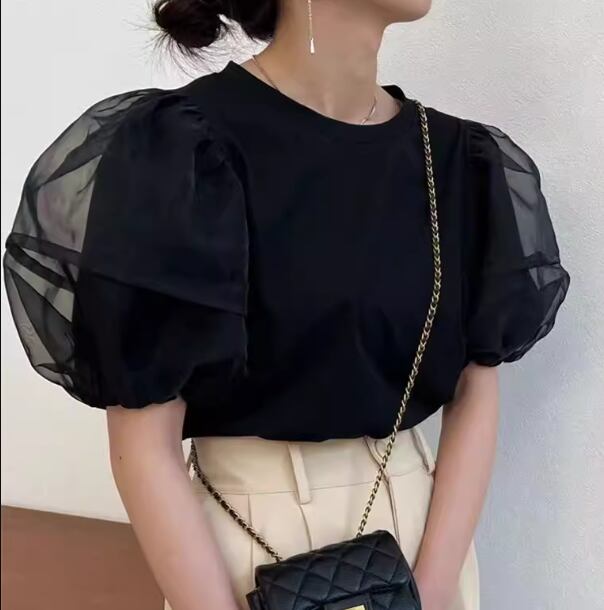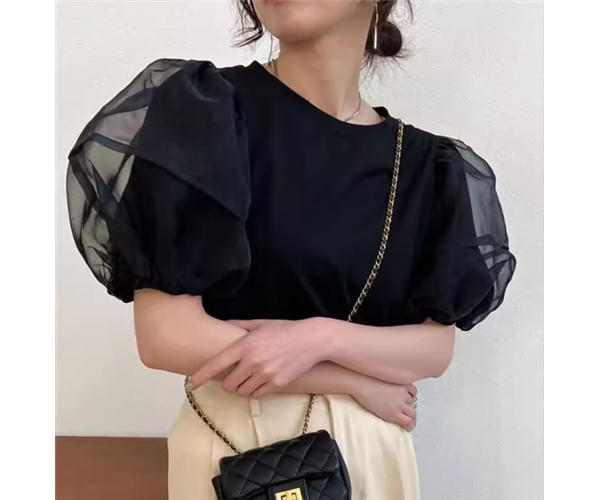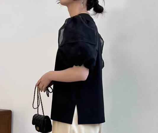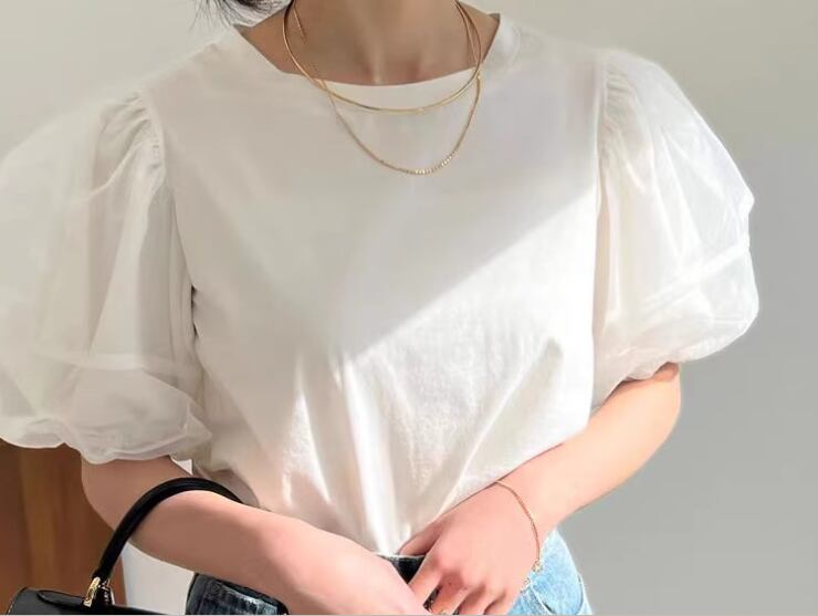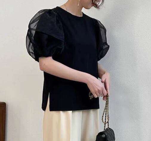 レディース トップス カットソー プルオーバー Tシャツ ミドル丈 半袖 ボリューム袖 パフスリーブ バルーン袖 ランタンスリーブ ラウンドネック ストレート フェミニン スリット 透け感 かわいい 大人可愛い きれいめ シンプル カジュアル 上品 おしゃれ エレガント 存在感 ラグジュアリー シック 高級感 無地 夏 デート お出かけ 普段使い 着回し トレンド 流行 ゆったり フリーサイズ ホワイト ブラック