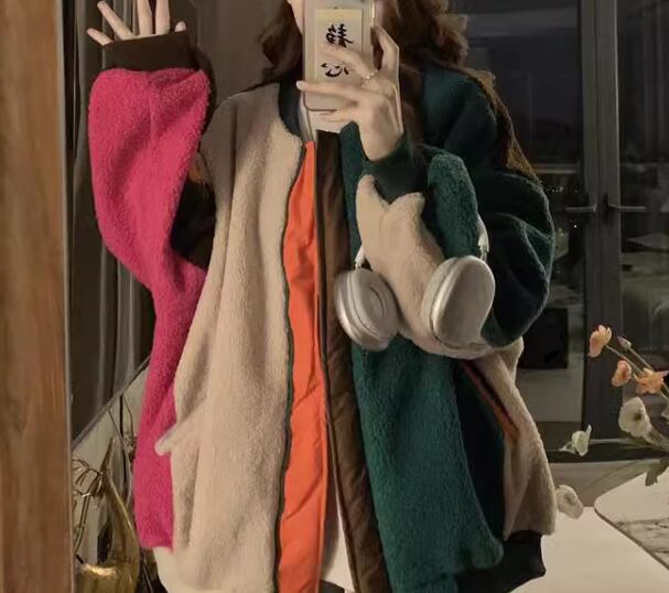 レディース ジャケット コート アウター 上着 ウール ムートンコート ミドル丈 長袖 襟なし ノーカラー ストリート ファスナー 厚手 コットン かわいい カジュアル おしゃれ レトロ ラフ ボーイッシュ ルーズ 個性的 存在感 キュート ラグジュアリー アクティブ 派手 高級感 芸術的 アーティスティック 華やか 優しい 柔らかい 冬 10代 20代 学生 デート お出かけ 暖かい 防寒 普段使い 着回し S M L XL ゆったり ベージュ カラフル